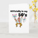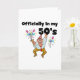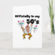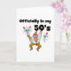 If you're looking for a humourous 50th birthday card, mug, T-shirt, button, or other 50th birthday item you'll love this cute design featuring a man in birthday party hat holding a glass of champagne and text that reads "Officially in my 50's"!