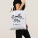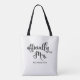 This trendy, stylish tote features modern black typography that says "officially Mrs." plus your new last name!
