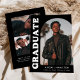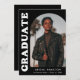 Stylish and trendy graduation announcement featuring the graduate's photo on the front with an offset arch photo frame. "Graduate" is displayed in bold white retro lettering on a black background. Personalize the front of the arch photo graduation announcement by adding the graduate's name, school, and graduation year. The card reverses to display an additional 3 photos with space for custom text such as future college plans, career plans, graduation party details, etc. The black graduation announcement is perfect for both high school and college graduates.