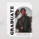 Stylish and trendy graduation announcement featuring the graduate's photo on the front with an offset arch photo frame. "Graduate" is displayed in bold black retro lettering on a white background. Personalise the front of the arch photo graduation announcement by adding the graduate's name, school, and graduation year. The card reverses to display an additional 3 photos with space for custom text such as future college plans, career plans, graduation party details, etc. The black and white graduation announcement is perfect for both high school and college graduates.