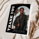 Stylish and trendy graduation thank you card featuring the graduate's photo on the front with an offset arch photo frame. "Thank You" is displayed in bold white retro lettering on a black background. Personalise the front of the arch photo graduation thank you card by adding the graduate's name, school, and graduation year. The inside of the card provides space for your typed or handwritten message. The back of the black graduation thank you card features a 3 photo collage.