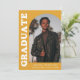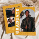Stylish and trendy graduation announcement featuring the graduate's photo on the front with an offset arch photo frame. "Graduate" is displayed in bold white retro lettering on a yellow-orange background. Personalize the front of the arch photo graduation announcement by adding the graduate's name, school, and graduation year. The card reverses to display an additional 3 photos with space for custom text such as future college plans, career plans, graduation party details, etc. The yellow-orange graduation announcement is perfect for both high school and college graduates.