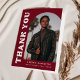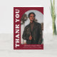 Stylish and trendy graduation thank you card featuring the graduate’s photo on the front inside an offset arch photo frame. “Thank You” is showcased in bold white retro-style lettering on a rich burgundy background. Personalise the front of this modern graduation thank you card with the graduate’s name, school, and graduation year. The inside offers space for a custom typed or handwritten message, while the back features a three-photo collage—perfect for showcasing favourite graduation memories. Ideal for both high school and college graduates.