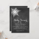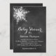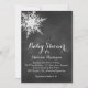 Fancy ribbon script and a hand sketched snowflake accent this chalkboard baby shower invitation. Just contact us at prettyfancyinvites@gmail.com, if you need coordinating items, or help personalising. Scroll down to see the coordinating stamp.