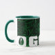 Mug for Orisha Oggun, full print of green chain and white name in text with cowry design.