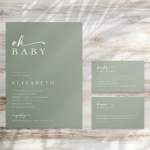 Oh Babies Sage Green Minimalist Baby Shower Thank You Card
