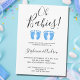 This stylish twin baby boys couples baby shower invitation is decorated with modern typography and cute watercolor baby's feet in pastel blue.