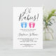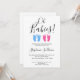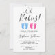This stylish twin boy and girl baby shower invitation is decorated with modern typography and cute watercolor baby's feet in blue and pink.