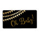 Oh Baby baby shower water bottle labels with pretty gold banner and gold glitter Oh Baby script on a black background. These baby shower water bottle labels are not water proof.