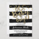 So trendy, this invitation features a black and white watercolor striped background and faux gold lettering and confetti falling in the background.