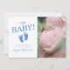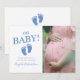 Invite your guests to your baby shower with this simple and modern baby shower invitation featuring your photo with the words "Oh Baby!" and cute baby feet with your name in blue. Personalise it with the provided templates for your photo, name and details.