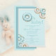 Oh Baby! Blue doughnuts in soft pastel watercolors form a “sweet” frame around a cute baby boy shower invitation. Simple as “sweet” as can be & perfect for your event.