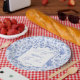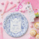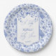 Oh baby blue toile de jouy sketch baby shower paper plate