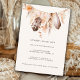 An elegant bamboo wicker modern boho style baby crib with hanging feathers, gender neutral baby shower invitation. Simple elegance. Neutral flesh beige tones. Serene muted colour scheme. Information on the back of the card.