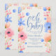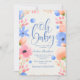 A watercolor baby shower invitation with blue, pink and peach flowers against an off-white background. Perfect for spring or any time of the year. (<a href='https://www.freepik.com/free-vector/baby-shower-invitation-in-watercolor-style_1747052.htm'>Designed by Freepik</a>). <br/><br/>The card is easy to customise with your wording, font, font colour and choice of six paper types.<br/><br/>Not exactly what you're looking for? All our products can be custom designed to meet your needs at no extra charge.<br/><br/>Simply contact us at askcottonlamb@gmail.com<br/><br/>Coordinating products available: