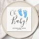 These cute Boy's Baby Shower paper napkins are decorated with modern script typography and watercolor baby's feet in pastel blue.