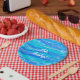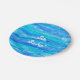 Blue, teal and purple paper plates for a birthday or baby shower.