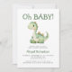 Oh Baby Cute Green Dinosaur QR Code Baby Shower Invitation