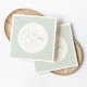 Oh baby! This adorable baby shower napkin features a light sage green gingham border and sweet custom text. The text areas can include parent name or names, baby shower, the date and more. It's perfect for a gender neutral baby shower and it can also work well for a baptism too! This cute napkin design coordinates with the Lea Delaveris Design gingham collection where you can find more sage green gingham party supplies and decor and other colours too.