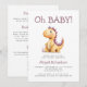 This cute baby shower invitation features an orange and purple watercolor dinosaur below the words "Oh BABY!" in purple hand printing font. Personalise the text with the name of the mum-to-be in purple and the details in charcoal grey sans serif font. The reverse side provides space for diaper raffle, books for baby, and registry details, along with a convenient QR code guests can scan to visit the registry. Ideal for a gender-neutral baby shower.