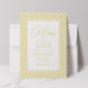 A classic golden yellow gingham frames this sweet and simple gender neutral baby shower invitation. With customisable text, this gingham baby shower invitation is perfect for celebrating a baby boy or girl on the way. The back is a coordinating sunshine yellow with white dots. Matching baby shower party supplies also available in the collection by Lea Delaveris Design. This baby shower invitation is also available as a digital download and in other colours as well.