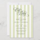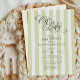 Elegant gender-neutral green and white striped baby shower invitation cards offer a timeless design perfect for celebrating a new arrival. Featuring soft pastel green vertical stripes on a crisp white background, the layout highlights graceful serif and script fonts that create a sophisticated and heartwarming presentation. The classic “Oh Baby” calligraphy header draws attention immediately, while the well-balanced typography beneath clearly outlines all the event details. This customisable design exudes charm and simplicity, making it ideal for traditional baby showers or gender-neutral celebrations. Perfect for those seeking refined baby shower invitations with soft green themes and minimalist design elements. Available as printed cards or an instant digital download.