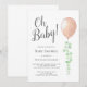 This Baby Shower Invitation is decorated with a watercolor beige balloon and green eucalyptus and says "Oh Baby!"