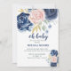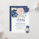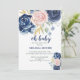 Oh Baby floral navy blue and pink girl baby shower Invitation