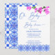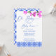 Oh baby French blue bougainvillea baby shower invitation template instant download, blue Mediterranean tiles, blue modern casual script, blue and pink invitation.