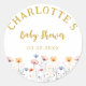 Personalised Classic Round Sticker's with floral design for your baby shower.