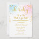 Adorable Oh Baby Gender reveal invitation . Boy or girl what will we have? Gold splatter with pinks and blues.
