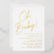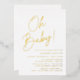 Simple baby shower invitations featuring "Oh Baby!" displayed in a bold gold foil script with a white background. Personalise the minimalist baby shower invitations with the mother's name and shower details. The gold foil shower invitations reverse to display your pregnancy photo and custom text. The invites are perfect for gender-neutral baby showers!