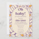 Cute retro baby shower design featuring midcentury modern arches, purple flower power patterns, and groovy type.The text can easily be personalised for a unique one of a kind design for your special day.