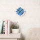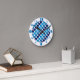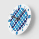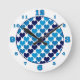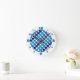 Diagonal rows of hearts in shades of blue accent this wall clock.