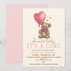 Oh sweet baby, it's a girl! Cute teddy bear theme baby shower invitations for a baby girl. Teddy bear featuring a pink bow with pink hearts & pink balloon with all the custom