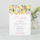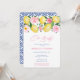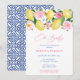 A Baby Girl is on the way! Celebrate with this pretty and fashionable invitations featuring vibrant watercolor lemons and glossy green leaves with pretty pink watercolor roses and peonies, complemented by cobalt blue and white tile reverse.