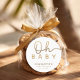 These Oh Baby little pearl ocean baby shower favor stickers feature a soft neutral design with elegant gold script, perfect for Little Pearl, coastal, and ocean-themed baby showers.