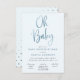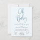 Baby Shower by mail invitation featuring "Oh Baby" in a fun calligraphy lettering with faux blue metallic foil. Gold polka dots on the backside. Customise with your photo on the backside.