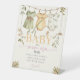 Oh Baby Mom-osa Bar Baby Clothesline Baby Shower Pedestal Sign. Celebrate your upcoming arrival with this adorable 'Oh Baby it's a Mom-osa Bar' freestanding sign. Featuring charming watercolor illustrations of baby clothes and dress hanging on a line, delicate florals, rustic botanical greenery, and a sweet little bird, this design sets a whimsical and joyful tone for your baby shower. The text clearly invites guests to 'Pour Some Bubbly, Add Some Juice, Top With Fruit,' making it a perfect addition to your mimosa bar setup. the text can be customized. It's an ideal way to add a personal and stylish touch to your mimosa drink station, ensuring your guests enjoy a festive and memorable celebration. Make your rustic boho baby shower complete with this unique and heartwarming design!