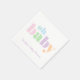 A minimal modern and gender neutral baby shower napkin featuring "oh baby" in a rainbow of pastel teal, blue, green, pink, purple and orange bold typography and the mother-to-be's name in a pastel purple stylish script.