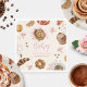 Pastries & Pacifiers baby shower brunch theme with Illustration of a pastry incorporated in to the design "oh baby" with pacifier, coffee, floral and pastry illustrations all around.