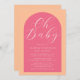 oh baby simple baby shower invitation , featuring a arch design in pink with a peach fuzz background . , a modern minimal design with beautiful detail to text.