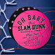 This classic "Oh baby, It's a slam dunk" girl's baby shower circle invitation features a pink basketball with bold lettering. The reverse side features a black background with pink star patterns. Personalize it for your needs. You can find matching products at my store.