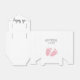 Cute party favour box for your baby girl shower featuring "oh baby" in a stylish script with swashes and a pink watercolor of baby feet. Underneath the flap you can easily personalise with the mother-to-be's name and shower date.