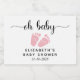 Cute mini sparkling wine labels for your baby girl shower with "oh baby" in a pretty script with swashes and a pastel pink watercolor of baby feet. Personalise with your name and shower date.