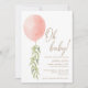 Oh Baby Pink Girl Balloon Eucalyptus Foliage Invitation