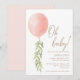 Celebrate your baby girl and invite your friends and loved ones to celebrate your baby shower with this adorable watercolor pink balloon and foliage design.