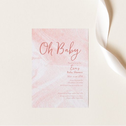 Oh Baby Pink Marble Girl Baby Shower Invitation