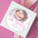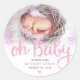 Oh Baby Pink Modern Sweet Girl Birth Photo Chic Classic Round Sticker