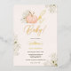 Oh Baby! Announce your upcoming baby shower with our boho-inspired invitations, featuring cute and charming pastel pink pumpkin and white floral watercolor with pink, fall Halloween Pumpkin with white flowers bouquet on pastel pink. The modern brush script adds a touch of elegance to these unique invitations that are perfect for any boho fall or Halloween-themed celebration., perfect for outdoors and garden party with real gold foil